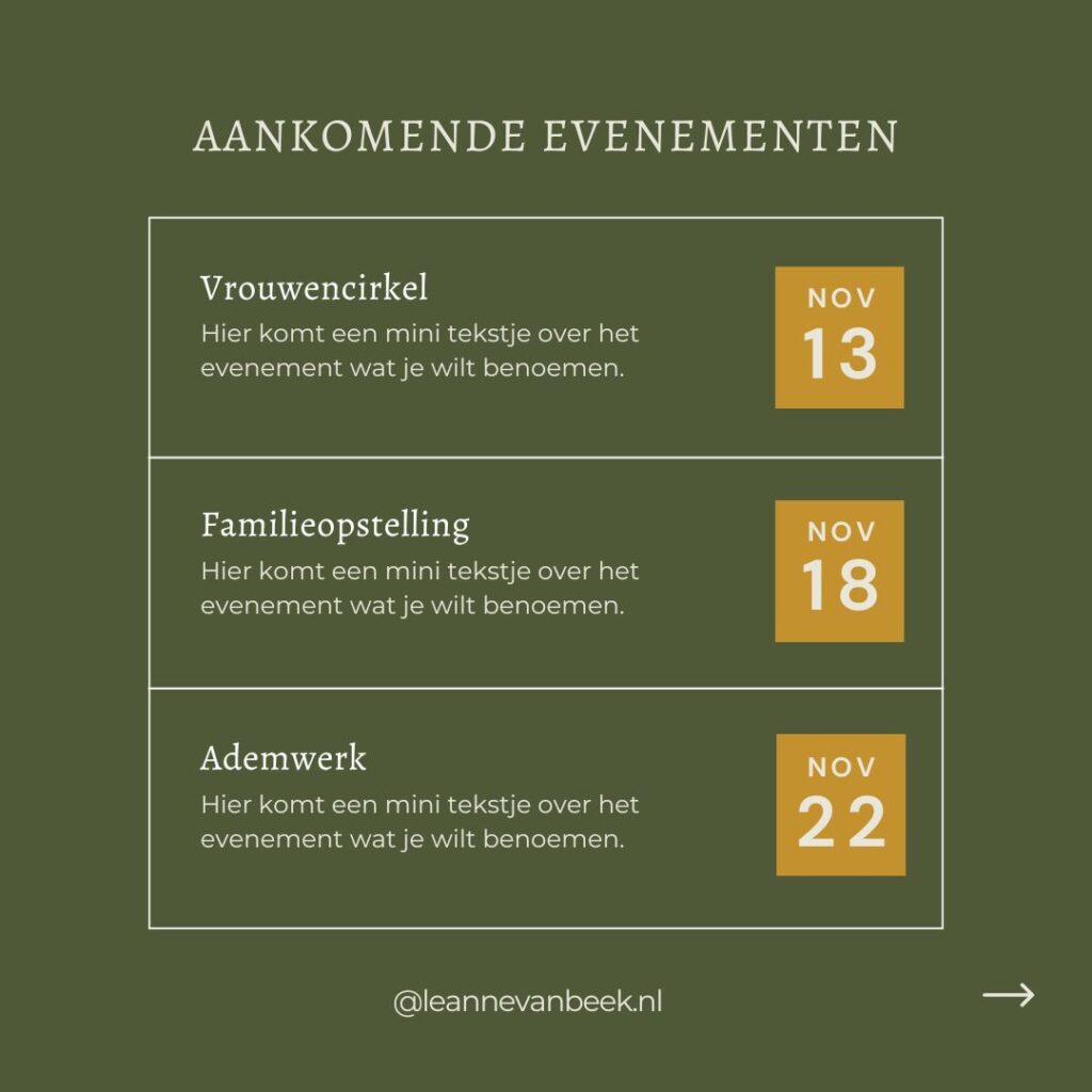 Vrรณeger, toen Instagram nog vierkante posts hadโฆ ๐ maakte ik een uitgebreide set custom social media posts voor Leanne. Gemaakt in Canva en volledig afgestemd op haar huisstijl. Ze zijn eenvoudig zelf aan te passen en daardoor eindeloos te gebruiken met nieuwe teksten, fotoโs en kleurcombinaties. Hieronder zie je een paar voorbeelden.